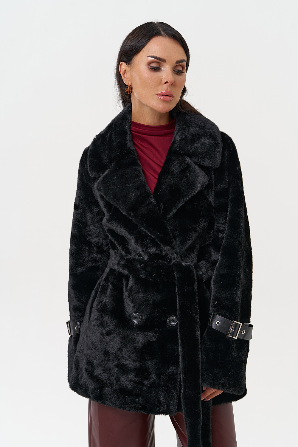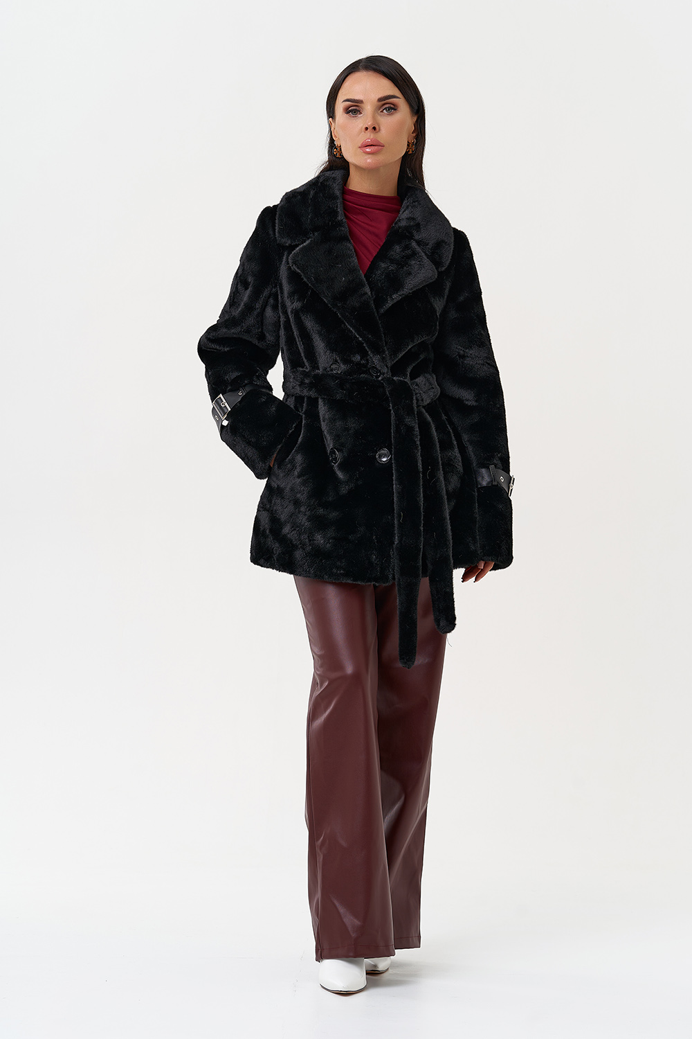 Фасон - прямой Длина изделия - 75 см Цвет - черный Материал - экомех Состав полотна - полиэстер 100% Подкладка - полиэстер 100% Вид застежки - пуговицы Вид ворота - английский воротник Фасон рукава - втачной, длинный |