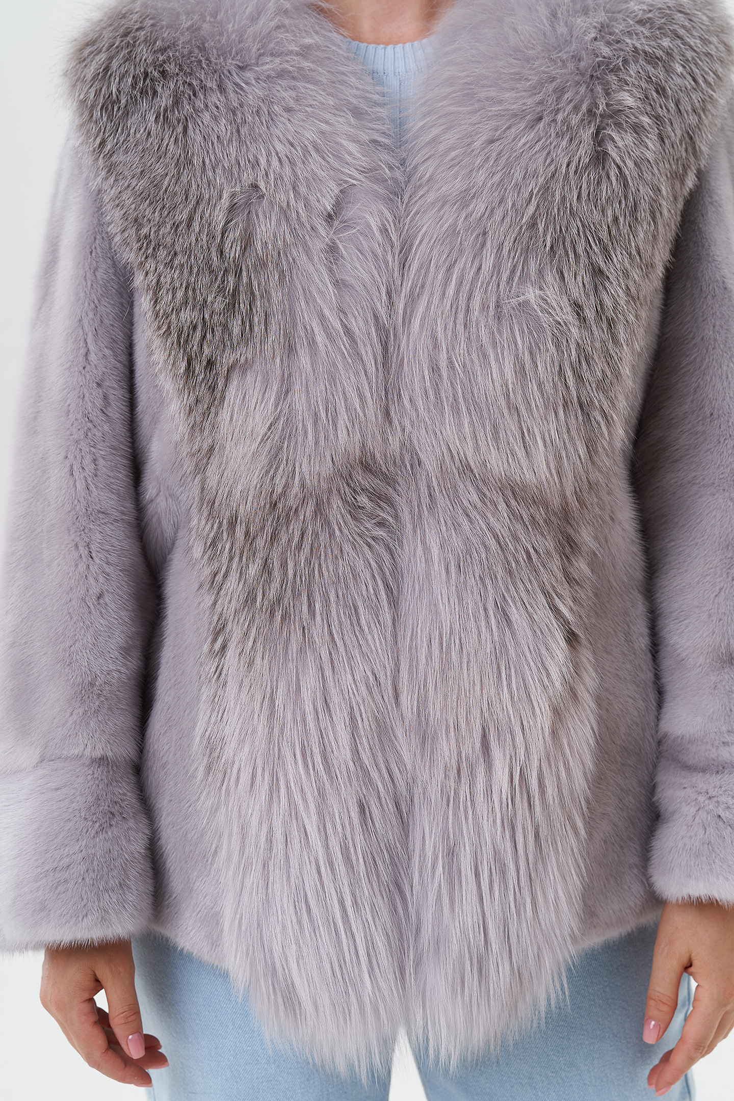 Тип ворота - V - образный воротник, отделка чернобурка